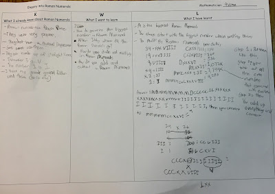 Already gaining the understanding that some of us have a lot of knowledge and some not so much about Roman numerals, I figured the good ole KWL chart would be the best strategy to cater to all their different levels of understanding.